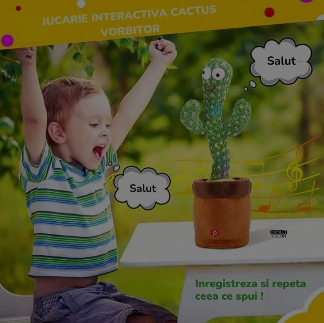 Jucarie Interactiva Cactus Vorbitor si Dansator Ericel, Imita, Canta si Danseaza, cu Acumulator si Cablu USB